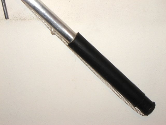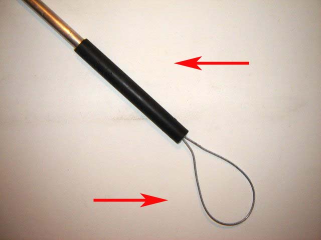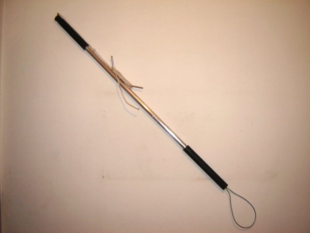 Confeccionado em cano de alumínio (espessura de 3,2 mm, diâmetro de 19 mm e 1,20 metro de comprimento), corda de nylon e cabo de aço revestido com plástico (fotos 1 e 2), o cambão modelo 2 é revestido em suas extremidades com borracha (fotos 2 e 3) e possui um sistema de travamento (foto 4) que possibilita ao adestrador maior facilidade durante o adestramento. Esse produto possui garantia de 1 ano - desde que utilizado da maneira correta.